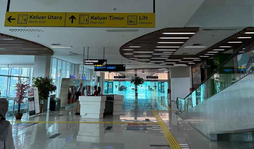 BNI City station has three floors and is about 500 metres (1,600 feet) in length. On the ground floor, a number of station support facilities such as escalators, tap-in and tap-out machines, ticket vending machines, two seating areas for passengers, and lifts are located. There are also food outlets, minimarkets, toilets, mosques, clinics, and self-service flight check-in machines.